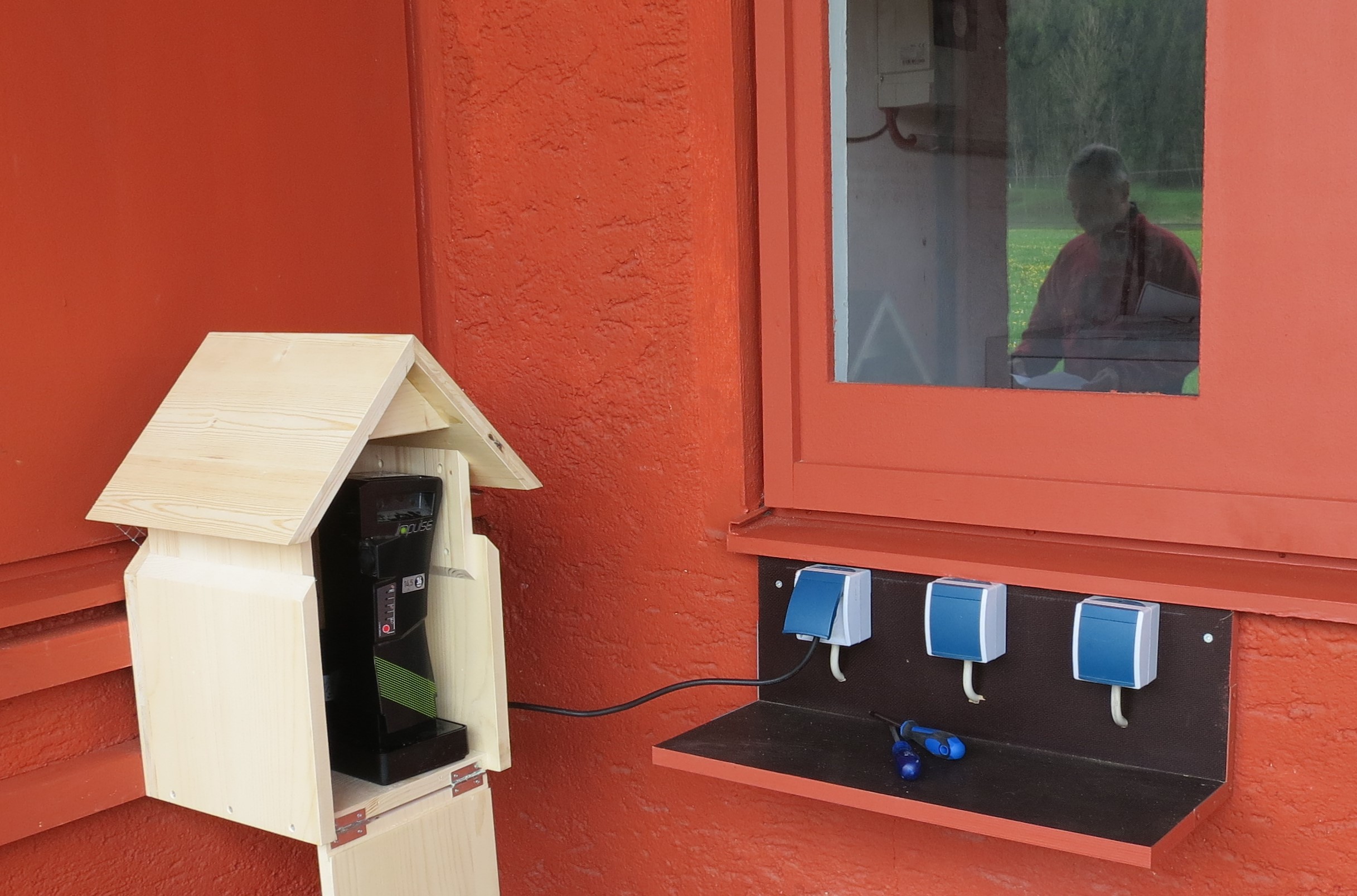 At pilot locations in an alpine hut near Oberstdorf and on an old farm, the Biberhof near Sonthofen, PV-StorePlus E-Bike was installed as shown in the picture below. The goal was to build a self-sufficient energy system, which is able to store electricity generated by solar modules. The electricity storage was built from second use batteries, i.e. batteries that due to reduction in the capacity cannot serve as traction batteries for E-Bikes anymore. While in the hut near Oberstdorf the installation of a real 2nd life storage was possible, the Biberhof was equipped with standard lead batteries. The reason is that the old farm is not occupied permanently anymore and therefore a swapping station for E-Bike batteries could not be supervised all the time.