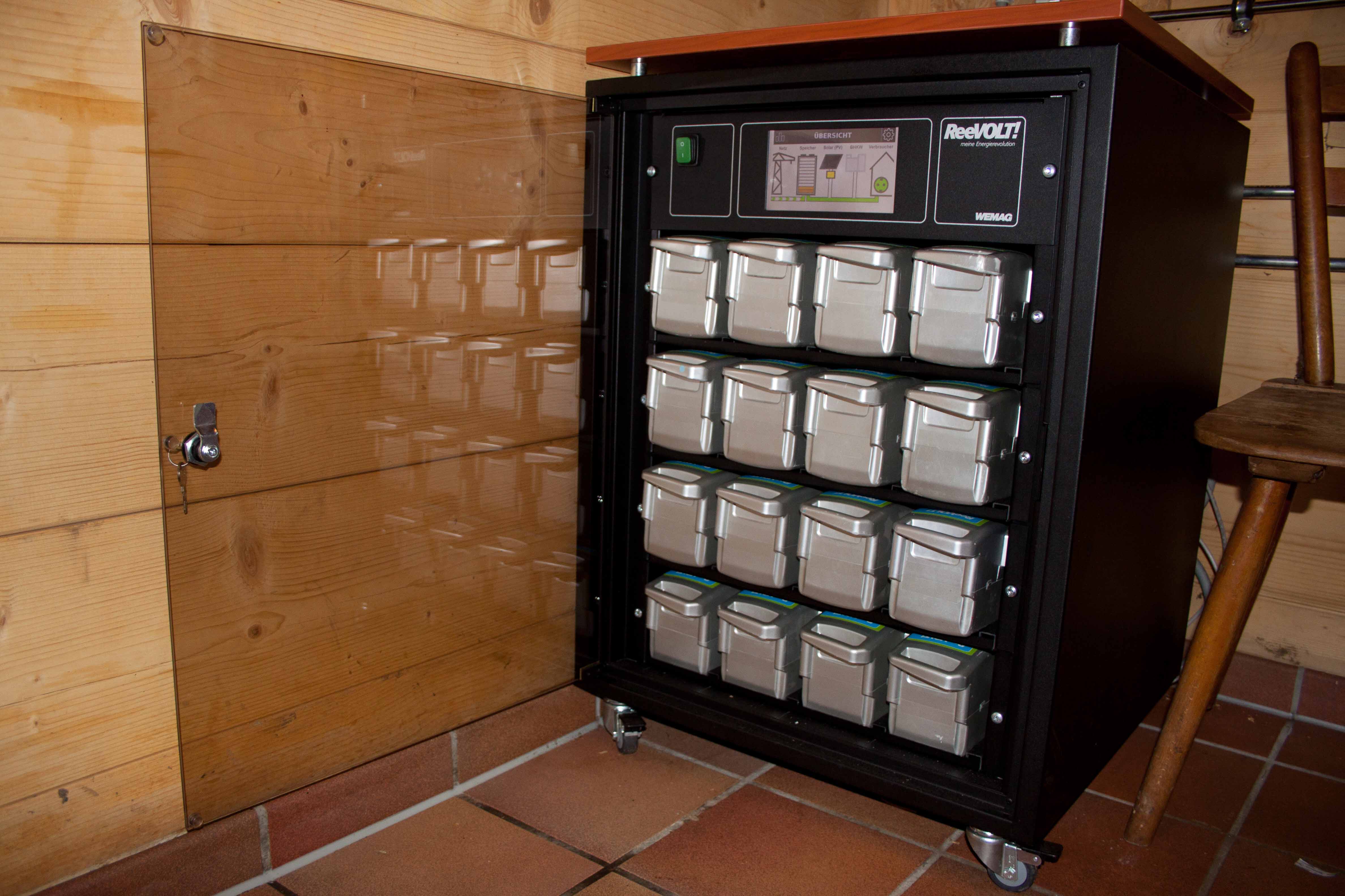 o The battery system installed at Ostrachstraße 22 - Mr. Lochbihler – is similar to the first one but it uses a different battery. A traction battery, normally used in e-vehicles (e.g. fork-lift trucks) with a capacity of 18,0 kWh was used for this storage system. The capacity of the pv-system is 9,3 KWpeak.